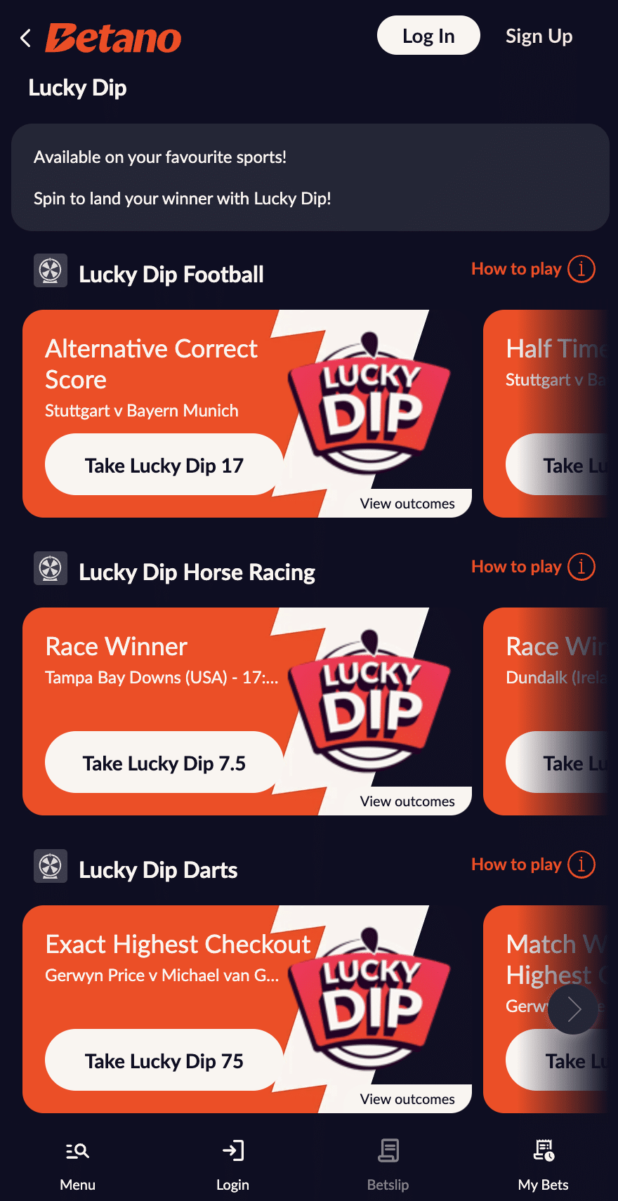 Betano keeps things exciting with its Lucky Dip promotion, allowing players to receive enhanced odds on randomly generated selections. Enter your stake, spin the Lucky Dip wheel, and enjoy a personalised odds boost on your selection. This feature adds an element of fun and unpredictability to your betting experience, making every spin a potential game-changer.