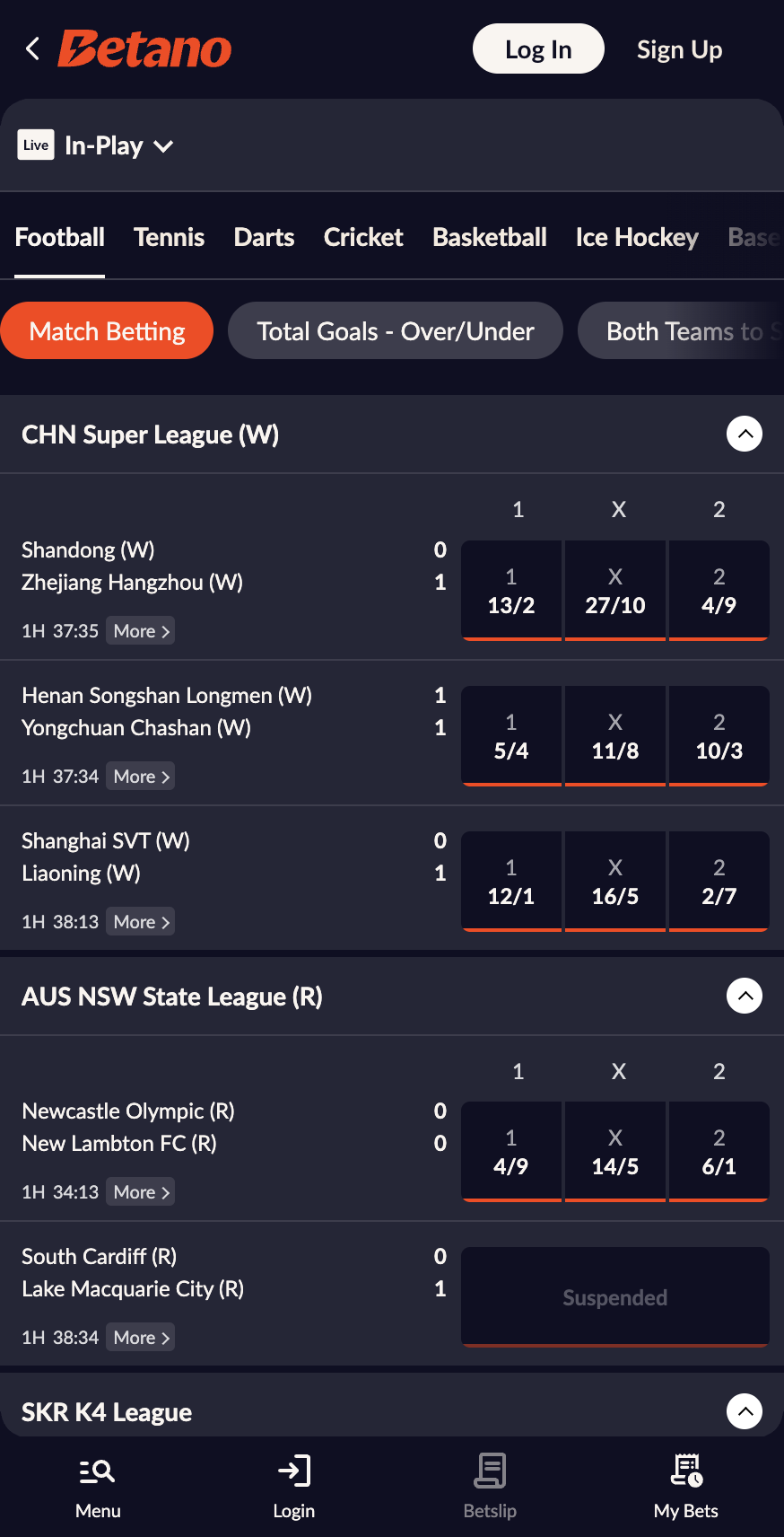 Betano Sportsbook markets & odds overview